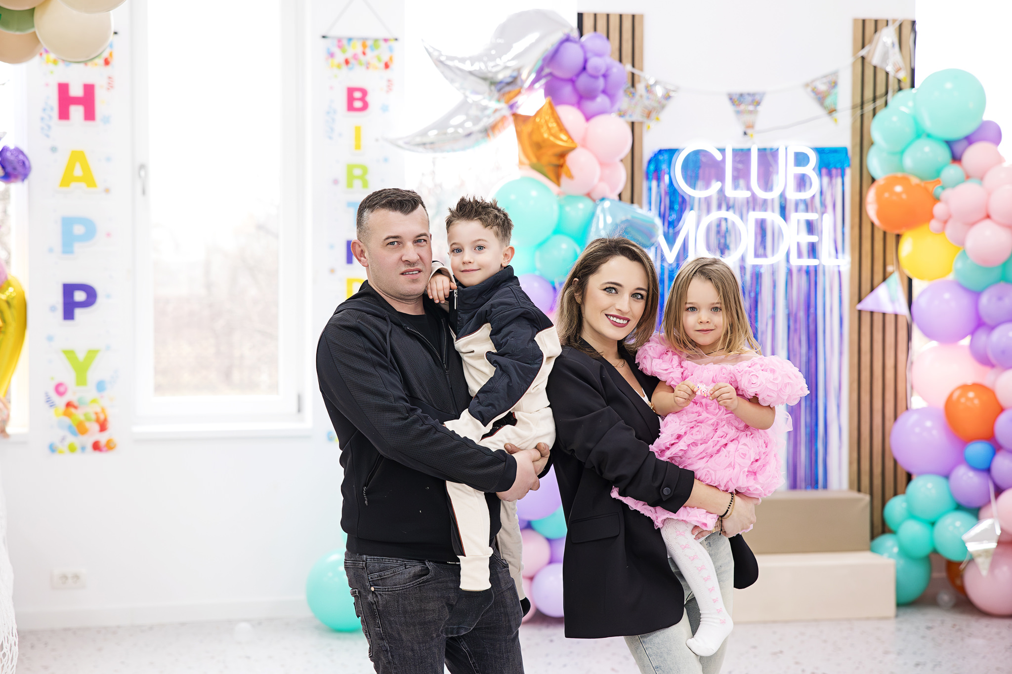 Petrecerea a avut loc la Club Model din Târgoviște, un spațiu care ajută enorm fotografia de eveniment pentru copii: este aerisit, luminos și gândit astfel încât cei mici să se poată juca în siguranță.